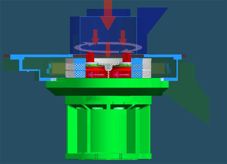 ● 然后經過粉碎烘干成鋸末狀的原材料通過傳送帶,傳送到鋸末顆粒機內部,經過加工形成成品鋸末顆粒,用于代替煤炭等污染較大型燃料燃燒。